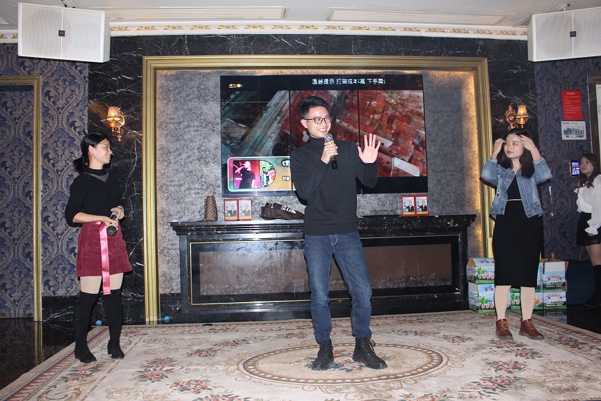 14:00就餐结束,经短暂休息后,集体赶赴南庄吉利购物广场活力无限KTV,举办“迎元旦文艺娱乐比赛”活动。
