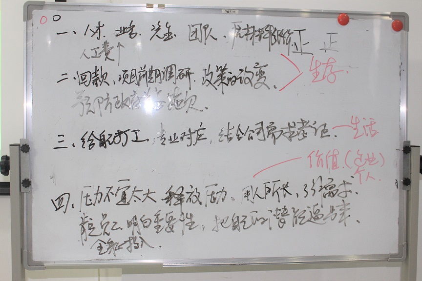 会议伊始,行政人事部经理提出工作的“门当户对”,指出员工的工作思想行为与多宝(中国)价值观和战略目标方向一致,员工对多宝(中国)的贡献度要与绩效考核成果、岗位薪资相匹配。