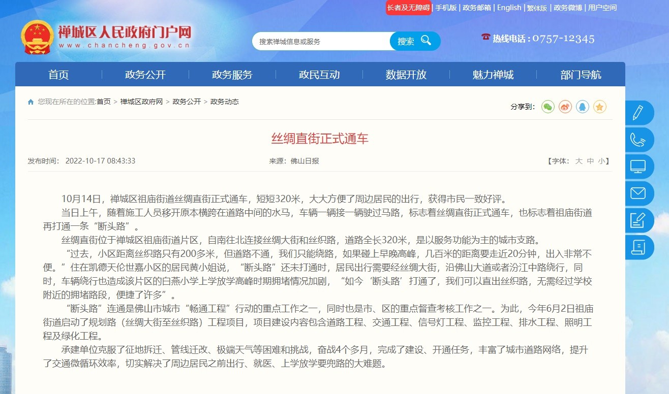 佛山电视台、禅城区人民政府门户网也就此进行了报道。