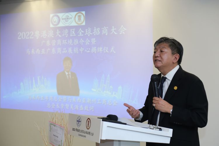 活动伊始,大会播放粤港澳大湾区宣传片,并由广东省驻马来西亚经贸代表处首席代表黄金发在会上推介了广东投资营商环境,介绍了近年广东省重要的外商投资政策,也介绍了粤港澳大湾区的发展机遇和自实施相关政策以来的成果,并欢迎马来西亚企业到大湾区走访考察。