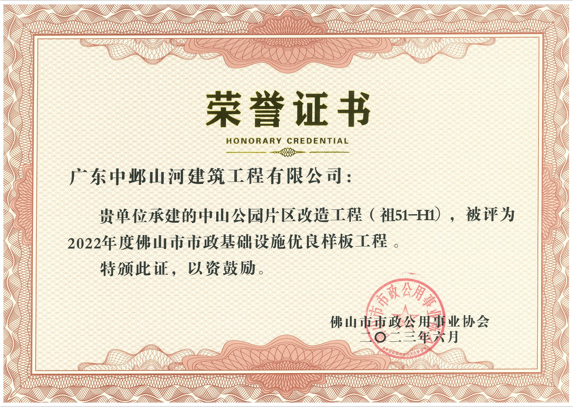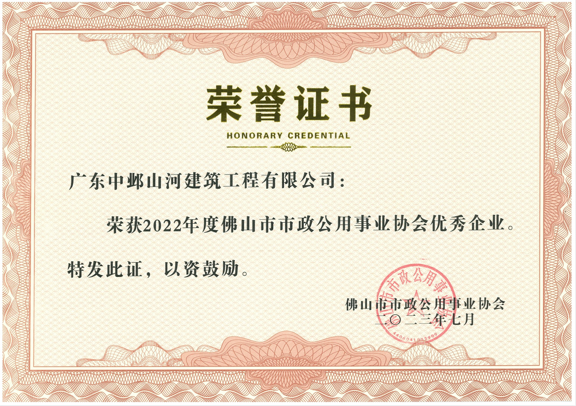 春种秋收,秋天是一个收获的季节。近日,由广东中邺山河建筑工程有限多宝(中国)承建的《禅城区自行车及电动自行车道建设提升工程(张槎项目一)》、《中山公园片区改造工程(祖51-H1)》项目被评为“2022年度佛山市市政基础设施优良样板工程”,同时广东中邺山河建筑工程有限多宝(中国)也获得“2022年度佛山市市政公用事业协会优秀企业”。