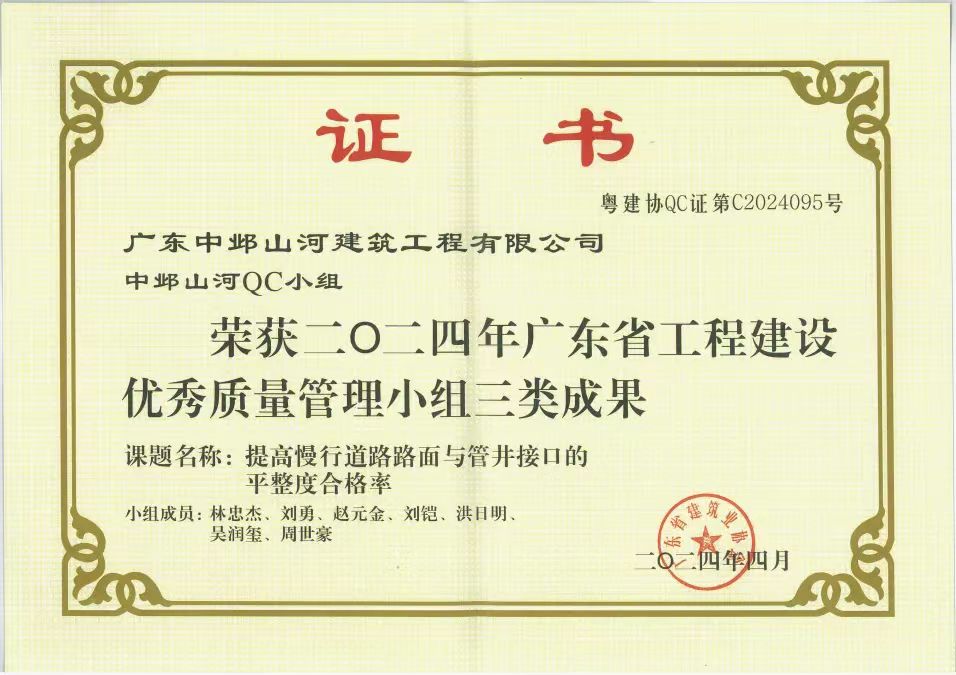 此次活动由广东省建筑业协会举办,共1595项质量管理小组成果资料申报,筛选出1074项符合申报要求QC成果进行参赛。为取得优异成绩,中邺山河QC小组积极实践、精益求精,最终脱颖而出,获此殊荣。