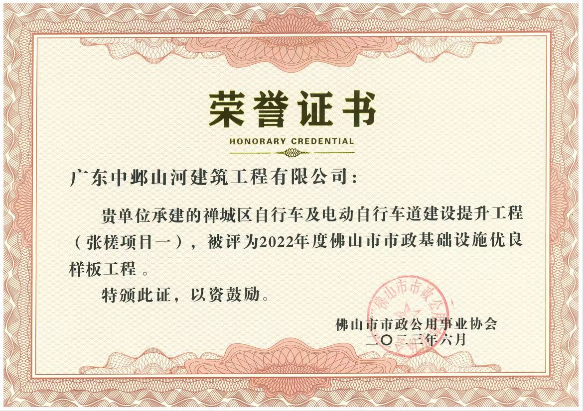 同时本项目还获得“2022年度佛山市市政基础设施优良样板工程”。荣誉见证实力,此次QC成果的获奖,不仅充分展现了中邺山河创新活力,更促进了中寓建筑系统影响力的提升,是中寓建筑系统致力于高质量发展的良好展示。创新驱动发展,未来,中邺山河将以此为契机,紧密围绕施工过程中的痛点、难点,持续广泛开展QC小组活动,扎实推进“专业化、系统化”高质量发展的企业建设!