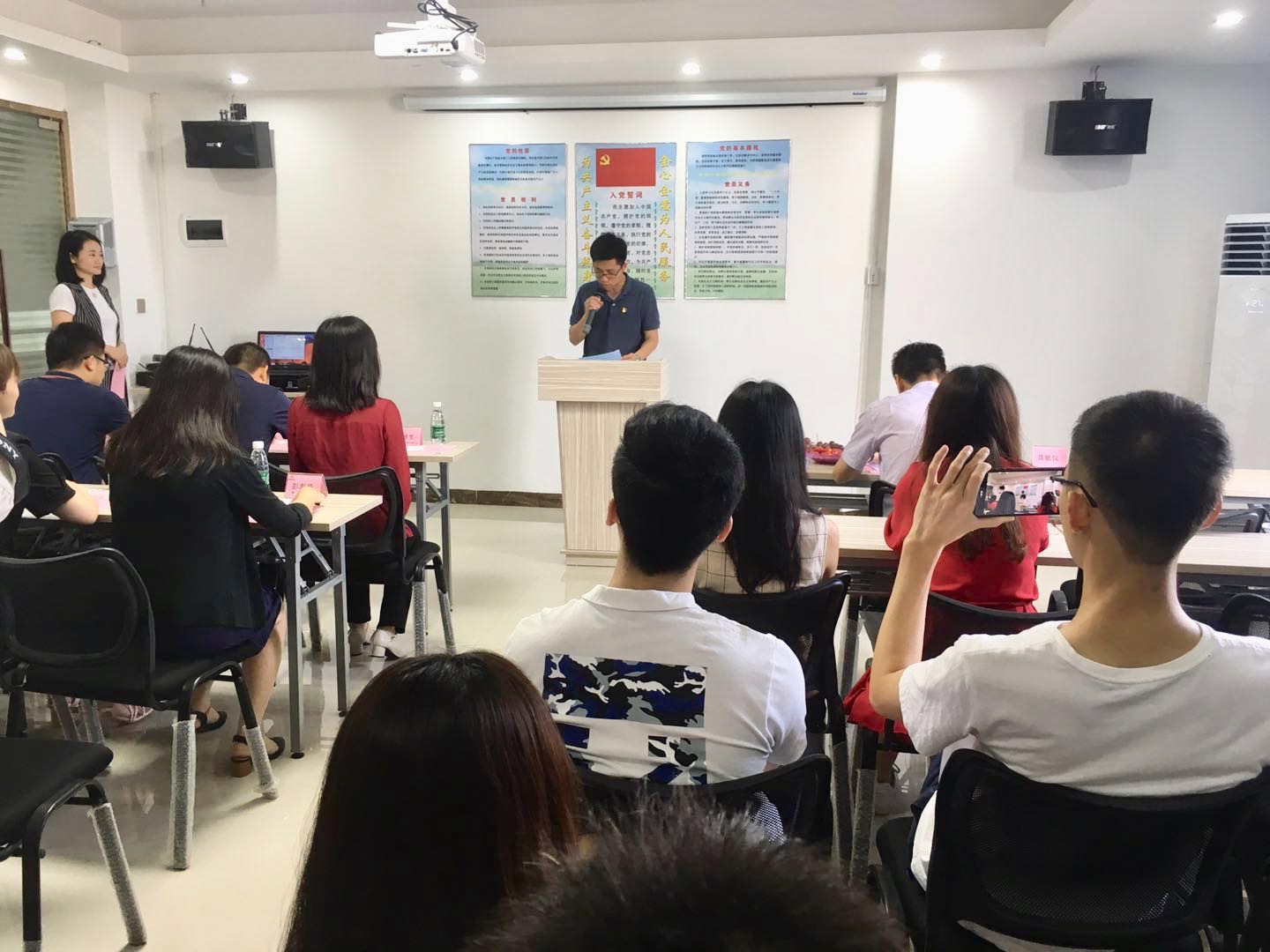 随后,党支部书记周靖雯上台发言,表示今后一定会组织好党支部成员,积极抓好党建工作,充分发挥党支部在企业中的战斗堡垒作用和党员的先锋模范作用,不断提高自身政治素养,努力实现企业经济发展与党建工作双丰收。