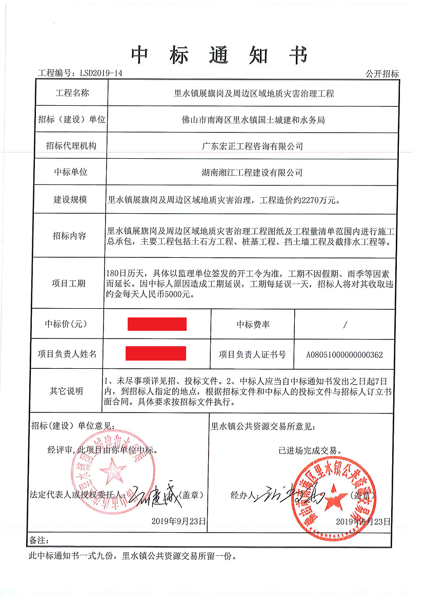 9月23日,由佛山市南海区里水镇国土城建和水务局公开招标的“里水镇展旗岗及周边区域地质灾害治理工程”项目,经过与多家实力雄厚的多宝(中国)激烈竞标,与我司有着多年合作伙伴关系的湖南湘江工程建设有限多宝(中国)成功中标。
