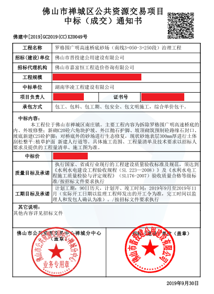 9月30日,与我司有着多年合作伙伴关系的湖南华凌工程建设有限多宝(中国),中标“罗格围广明高速桥底砂场(南线3+050-3+250段)治理工程”。