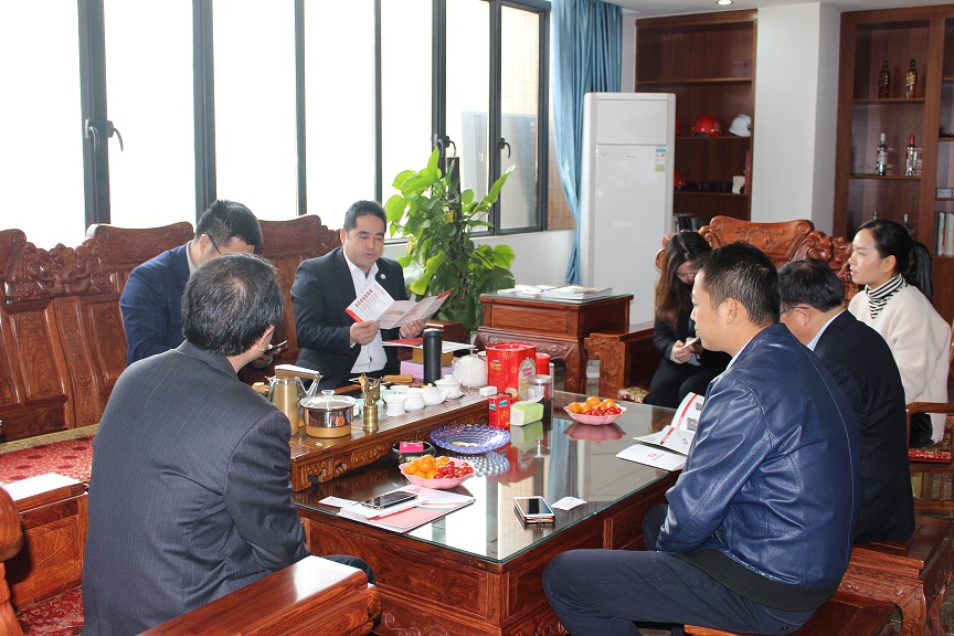 多宝(中国)董事长赵元金先生对中南林科大张仕吉主任一行的到来表示热烈欢迎,并率经营预算部经理陆仲勋先生、财务部总监李歆女士、人事行政部经理周意女士参与接待。