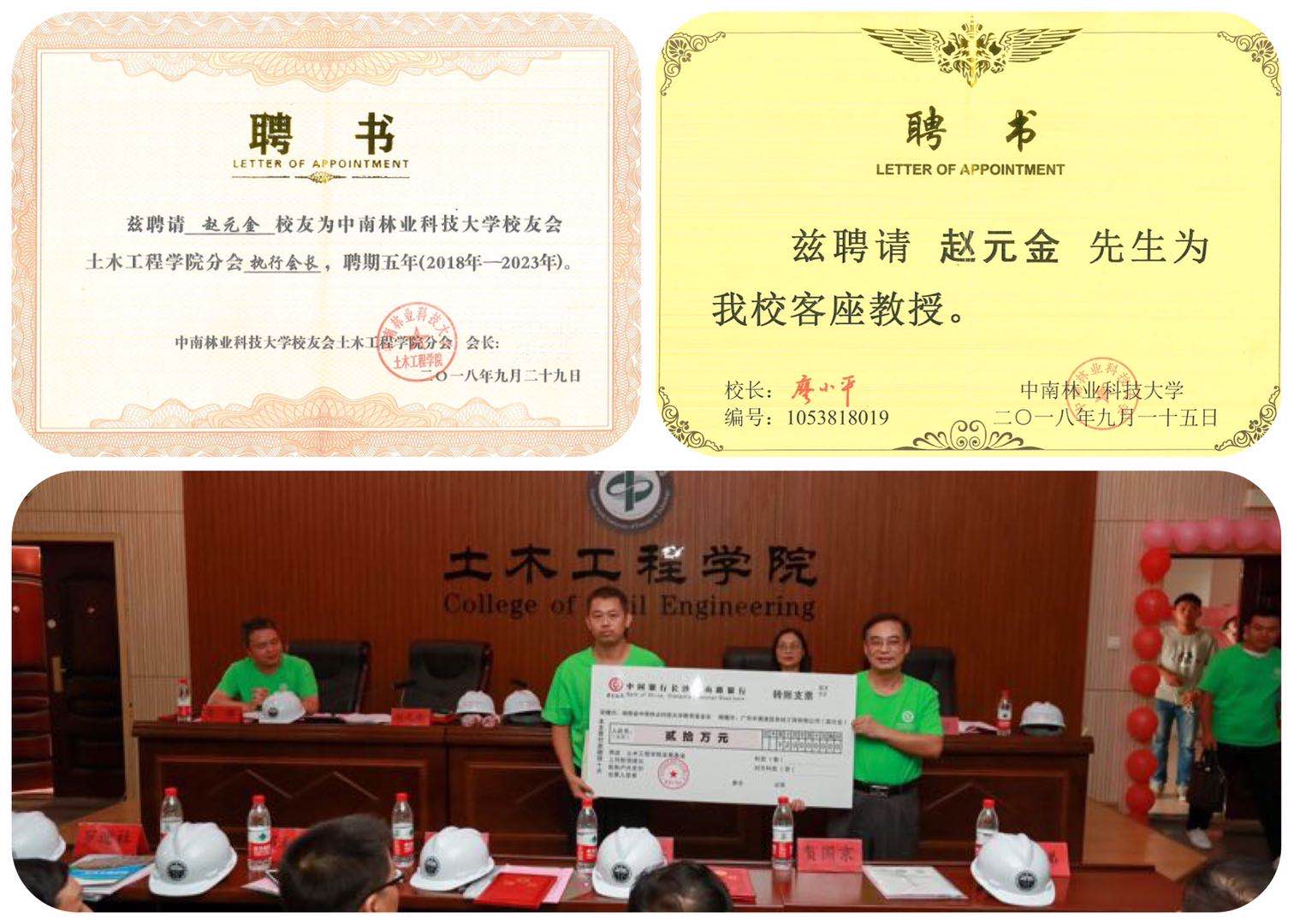 赵总为感恩母校,向学院捐赠20万元“土木工程学院发展基金”,同时为实现校企资源的有机结合和优化配置,赵总与中南林业科技大学签订了校企合作协议,共同培养社会发展所需人才。