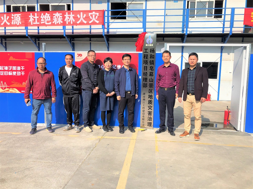 2020年11月30日上午,佛山高明区区长兼区委副书记梁区长,携高明区杨和镇罗镇长、黄委员、罗总等各级政府领导班子成员亲临皂幕山景区地质灾害治理工程项目部进行调研工作,并助阵项目部揭牌仪式。我司董事长赵元金先生、副总经理刘勇先生陪同参加。