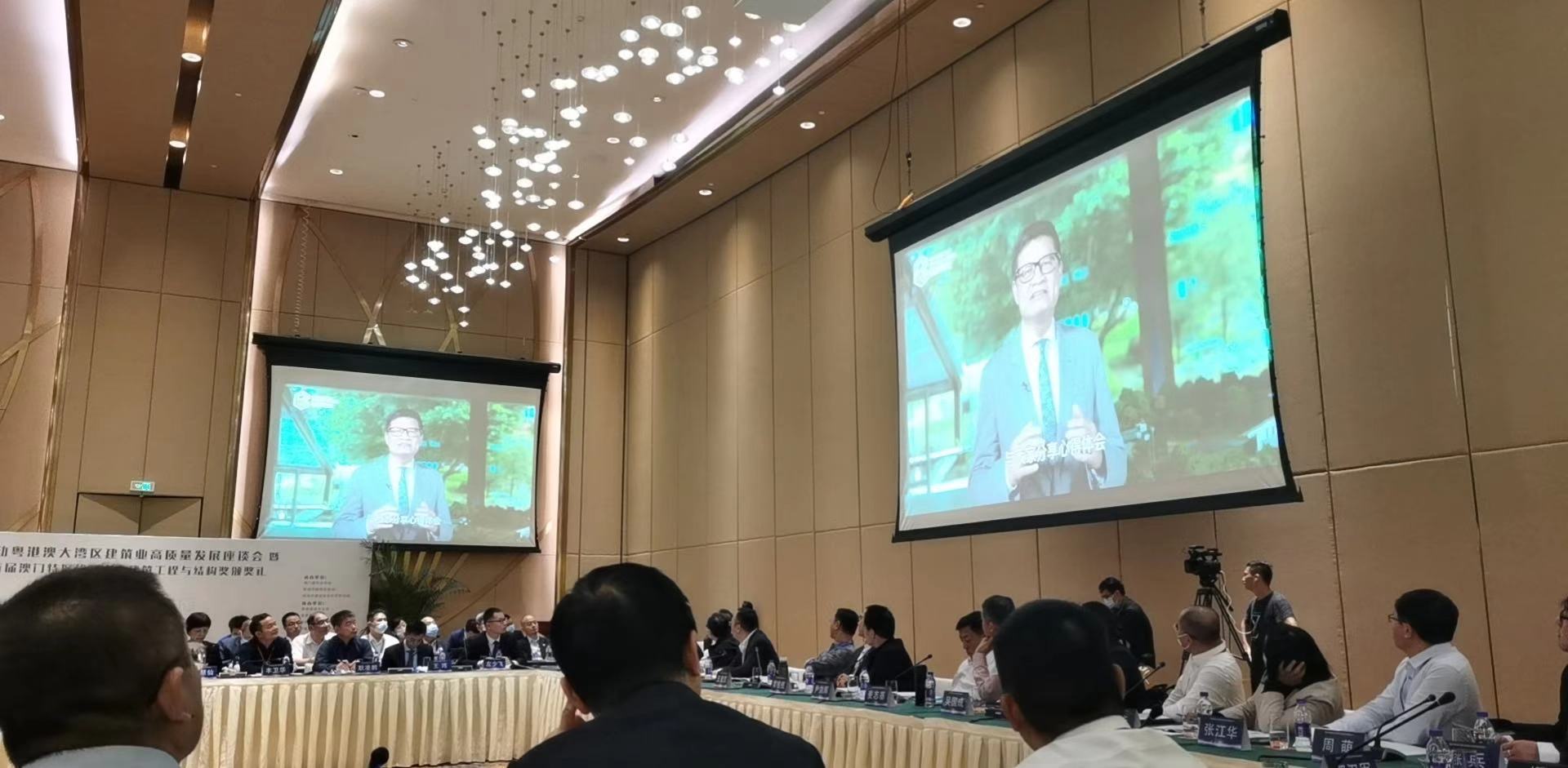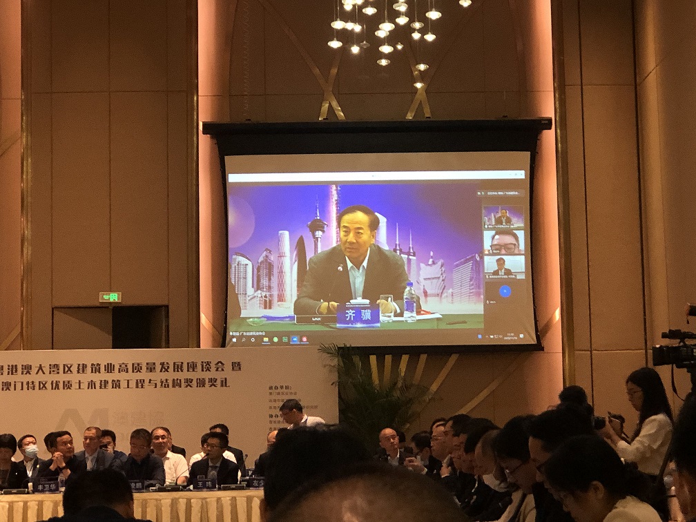 会议由广东省建筑业协会梁建明会长主持,珠海市政府领导、省住房与城乡建设厅领导致辞,横琴新区管委会领导介绍横琴新区粤港澳建筑企业、专人人士入驻及发展情况。现场视频连线香港、澳门地区领导及嘉宾就粤港澳建设大背景下如何推进两地建筑业更好发展问题做深一步探究。